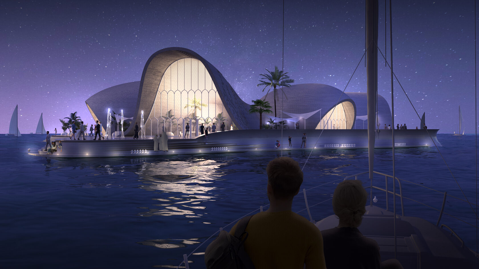 Общественный центр Катара — это плавучий комплекс креативных индустрий, расположенный в бухте Доха. Представляет собой напечатанные на 3D-принтере остекленные своды на плавучих понтонах.